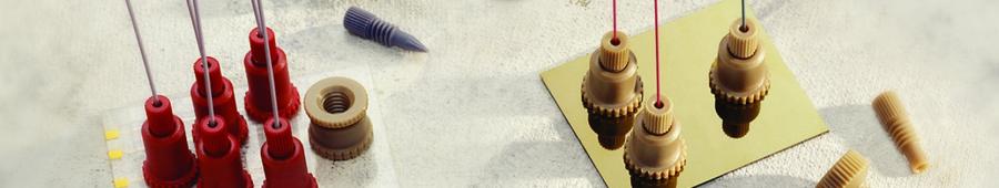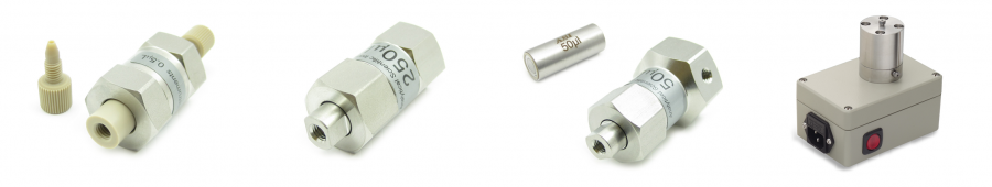 ASI manufactures a wide range of static mixers to solve the most demanding high pressure mixing problems. ASI HyperShear Mixers incorporate a highly efficient cross-flow shearing mechanism which produces vortex shear mixing over a wide flow range. This mixing technology typically delivers between 25% to 200% better mixing efficiency compared to conventional packed bed or tortuous path mixers. HyperShear Mixers are available in a variety of housing formats including: inline, binary, and ternary inlets. Mixers are constructed from 316 stainless steel with volumes ranging from 0.5 μL to 15.0 mL. or Biocompatible PEEK with volumes ranging from 0.5 μL to 1.5 mL. Within a given mixer flow series, mixer cartridges are interchangeable. The ability to swap mixer cartridges within a given mixer series makes selecting the optimum mixer volume easy and economical. UHPLC mixers, In-Line Combo Series and Prep Flow Series (3.0 mL - 15 mL) are only sold as complete assemblies.