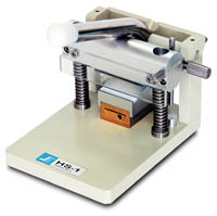 There are various devices that can create cross-sections of multi-layer films for analysis of the molecular structure using infrared spectroscopy. To date, cross sections of multilayer laminates have been created by embedding the sample in epoxy resin and then using a microtome to create the cross-section slices. This technique has various drawbacks, including the time required for the resin to harden (several hours for epoxy resin) as well as resin contaminating the sample. In addition, since the IRT-7000 infrared imaging system can dramatically shorten measurement times compared to conventional imaging measurement systems, the need to reduce the time required for preprocessing samples was required. For the creation of cross sections, the SliceMaster developed by JASCO, was used. This accessory can provide thin slices or cross sections of various samples, including multi-layer laminates, without embedding them in resin.