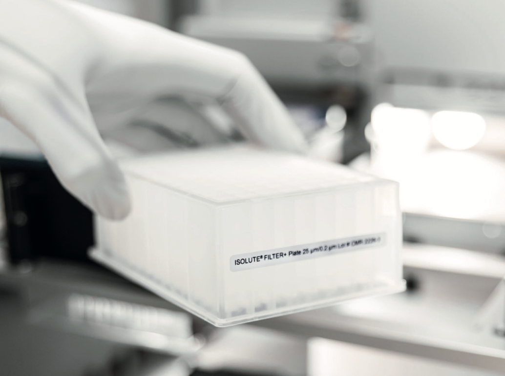 ISOLUTE FILTER+ plates provide effective, workflow friendly filtration of biological samples, perfect for use prior to UPLC-MS/MS analysis. ISOLUTE FILTER+ plates are designed to prevent sample particulates from reaching the analytical UPLC column, protecting the analytical system from particulate build up over time.