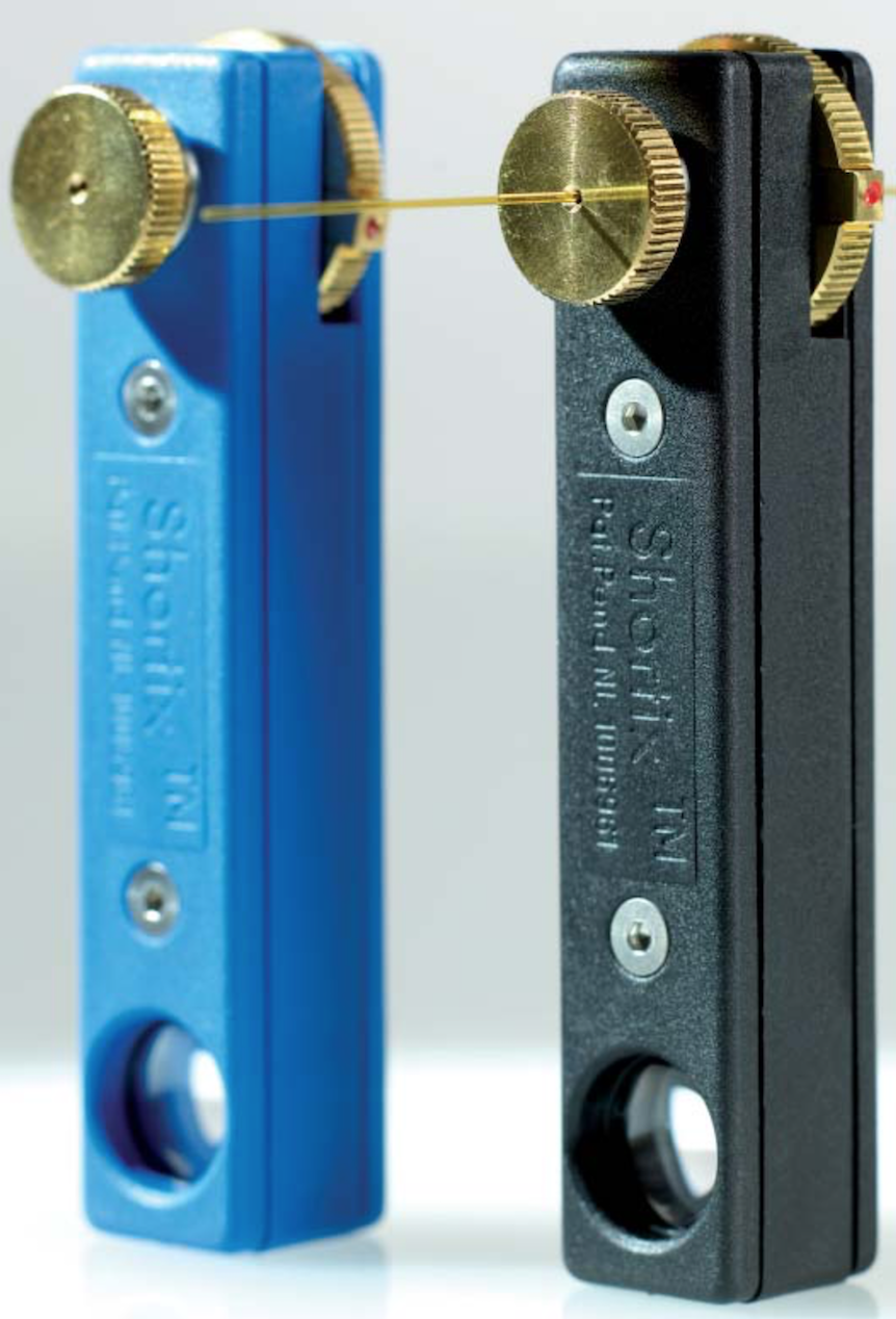 The Shortix is very simple to use. When the column is inserted into the cutter, it is immobilized by tightening a locking wheel on the top of the device. With the rotation of the cutter wheel, the surface of the column is cut precisely with a diamond blade. The blade cuts through the polyimide coating and scores the fused silica layer of the column. The tool creates a clean, straight cut that is 90° to the axis of the column.