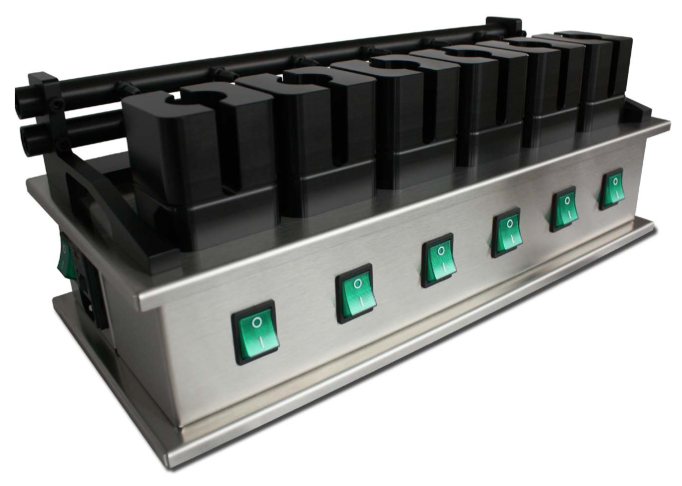 The PermeGear V6-CB manual diffusion system is an apparatus employing Franz cells for carrying out in vitro release testing (IVRT) and in vitro permeation testing (IVPT). The system enables a researcher to measure the release or permeation of a compound into or through membranes.