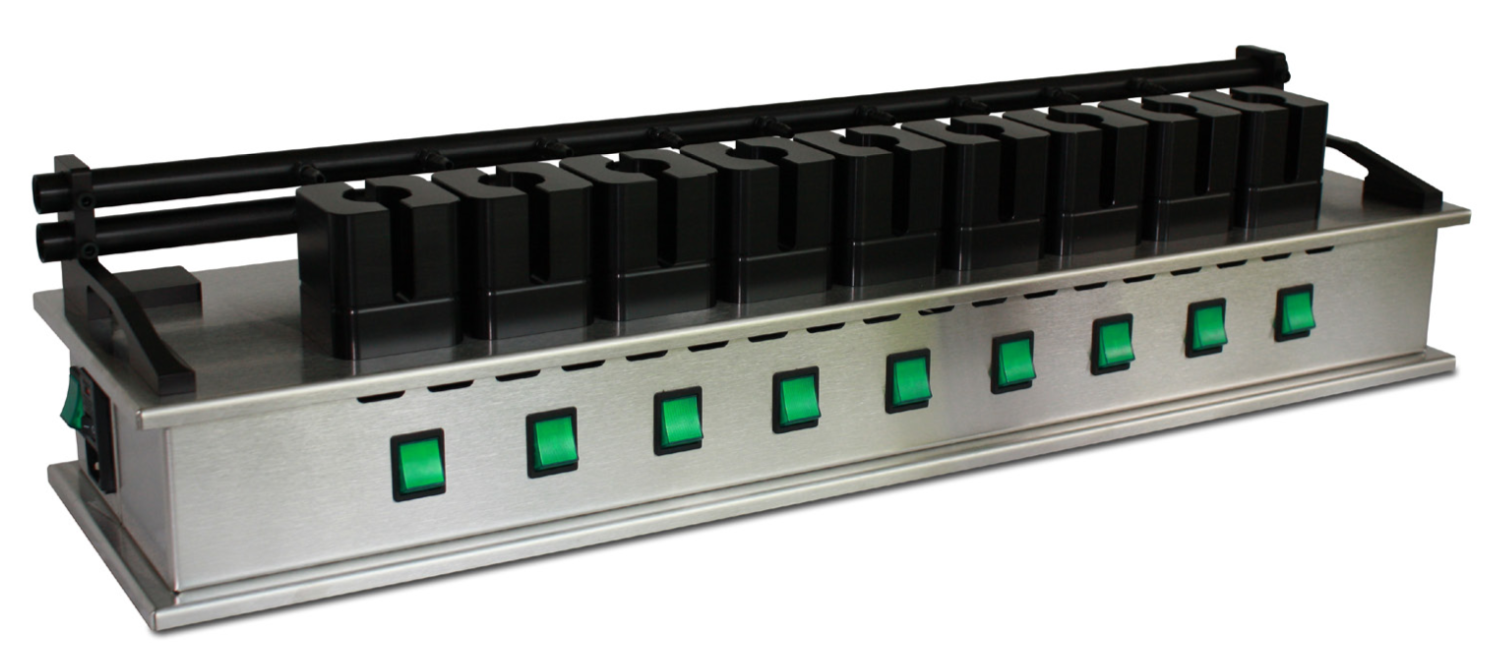 The PermeGear V9-CB manual diffusion system is an apparatus employing Franz cells for carrying out in vitro release testing (IVRT) and in vitro permeation testing (IVPT). The system enables a researcher to measure the release or permeation of a compound into or through membranes.