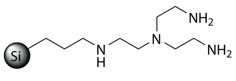 he Biotage ISOLUTE Si-Trisamine is a silica bound equivalent of a trisamine base and can scavenge a variety of electrophiles, including aldehydes, acid chlorides, sulfonyl chlorides, isocyanates, isothiocyanates and heavy metal ions such as Mn2+, Fe3+, Co2+, Ni2+, Cu2+, Pb+2, Ru+2 and Zn2+. Si-Trisamine has a number of uses, it is a very powerful scavenger of transition metals and can also be used as a work-up tool to remove electrophiles or acids in either batch or flow-mode (cartridge) following traditional reflux heated or microwave synthesized reactions.