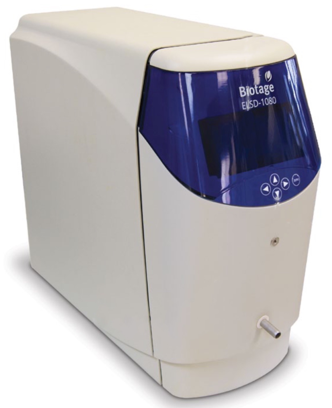 The Biotage ELSD-1080 is a universal detector designed for use with Isolera flash purification systems when purifying organic compounds that are undetectable with UV or visible light or those that do not ’fly’ by traditional mass spectrometry techniques.
