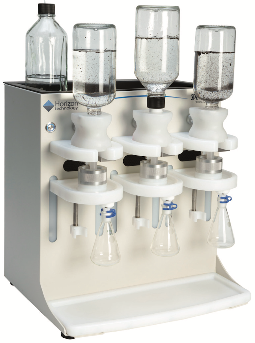 The Biotage Horizon 5000 automated extraction system is a programmable, multipurpose SPE system, capable of processing aqueous samples directly from their original containers. Once the process is initiated, each Horizon 5000 module delivers all the necessary solvents to precondition the sorbent material within the SPE disk, passes the water sample through the disk and, after a preset air-dry time, extracts the sorbed analytes from the disk into a collection vessel using the required amounts of solvents.