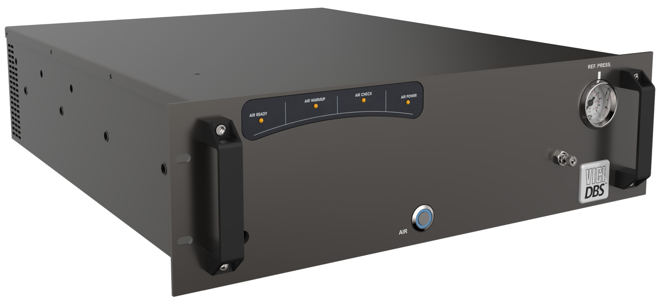 The VICI DBS GC plus rack zero air generator utilizes compressed air that is prefiltered to 5 microns and then purified using a state of the art combined heated catalyst module. The output zero grade air is free from total hydrocarbons to <0.1 ppm, making it ideal for all FID applications. This purity level (measured as methane) produces a low signal to noise ratio, ensuring a flat and stable analyzer baseline.