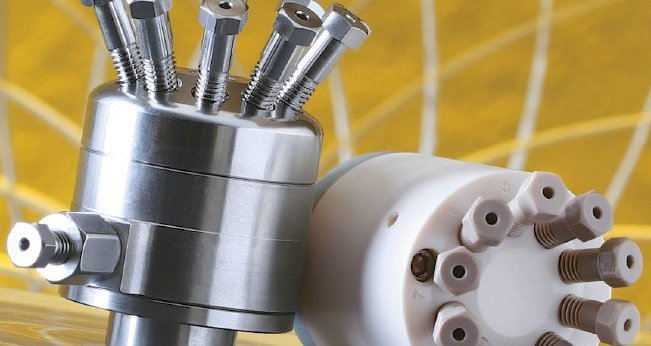 Choose among 4, 6, 8, 10, 14, 20, 24, or 28 position stream selection valves, in high pressure and low pressure models, plus UHPLC selectors for up to 10 streams. A variety of configurations are available with bore sizes from 0.10 mm (.004") for HPLC column selection to 4.6 mm (.180") for applications requiring minimal restriction across the valve. Metal or all-polymeric valves can be ordered, with models available in manual, pneumatic, or electrically actuated versions.