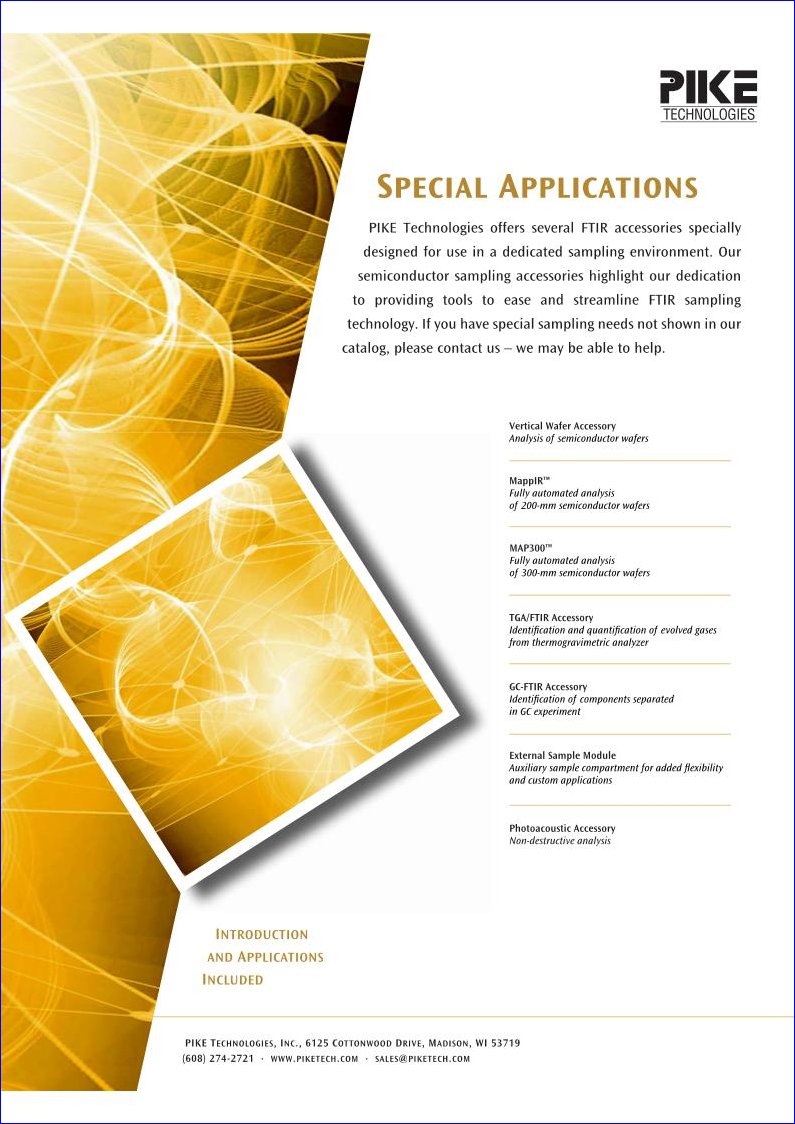 PIKE Technologies offers several FTIR accessories specially designed for use in a dedicated sampling environment. Their semiconductor sampling accessories highlight their dedication to providing tools to ease and streamline FTIR sampling technology. If you have special sampling needs not shown in our catalog, please contact Norlab – we may be able to help.