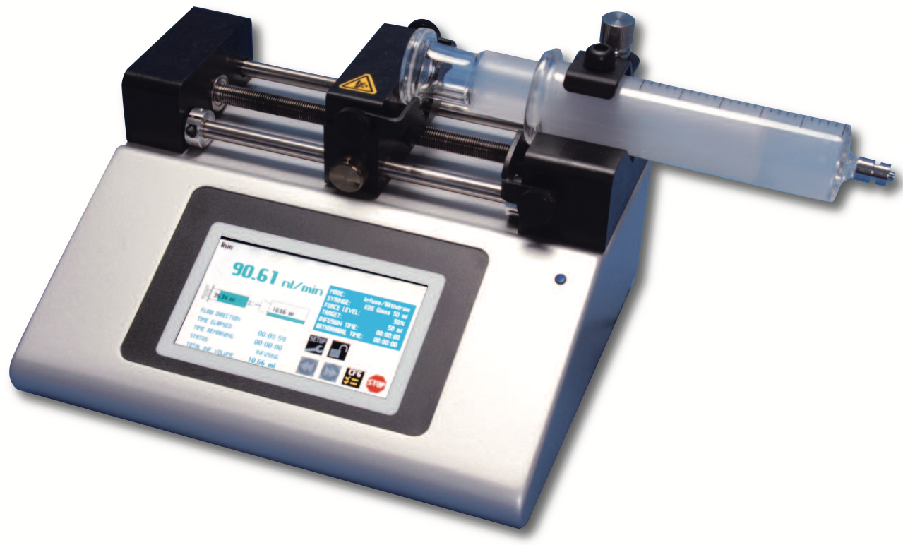 KD Scientific Legato 110 single syringe infuse/withdraw with program option for 2 programs, 50 steps each. It accommodates syringes 0.5 ul to 60 ml. It has user definable flow rates with selectable target volume or time values to control the total infusion volume.