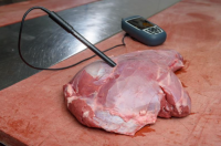Meat quality is determined by the muscle pH and its change in time, which in turn is strongly dependent on pre-slaughter conditions (i.e. stress) imposed on the animals. Monitoring the pH of slaughtered meat provides a suitable tool to ensure its quality and consequently also good consumer’s experience of the product. Therefore, measuring the pH is common use in the meat industry and even obligatory in some countries.
